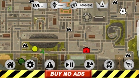 左侧可操控移动与加速,右侧则对应绳索、攻击(含跳跃功能)与跳跃操作;画面右上侧的武器切换界面,以及血量、经验值的显示均实时更新,状态信息一目了然。玩家能以自由的玩法,与其他帮派成员展开交火——击杀敌人可获取经验,连续击杀会累积星级,此时警察与附近角色将对你重点“关照”,发起猛烈攻势。而如何在激战中存活,又如何成功击杀对手,正是你需要完成的核心任务。