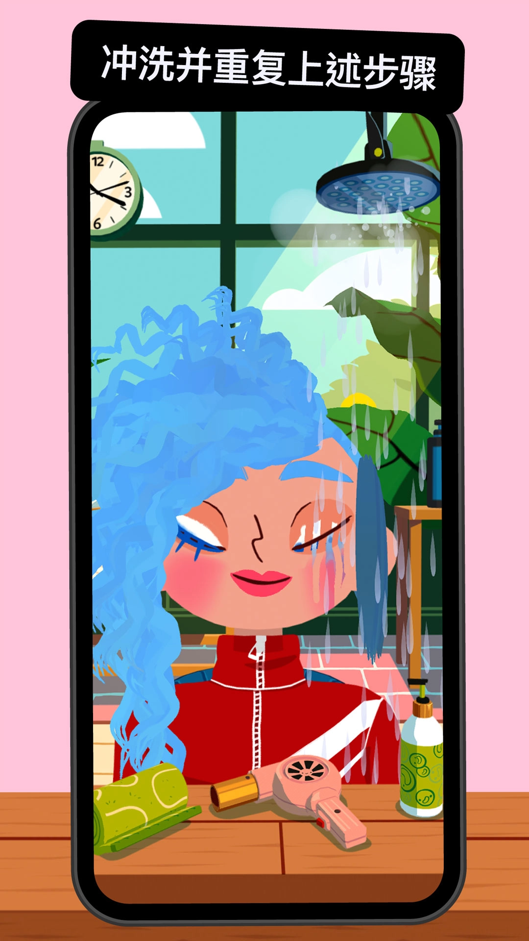 画面采用明亮活泼的平面卡通风格,每个场景都融入了浓郁的生活质感。从各式美发器具到顾客的发型样式,每一处细节都经过细致打磨。