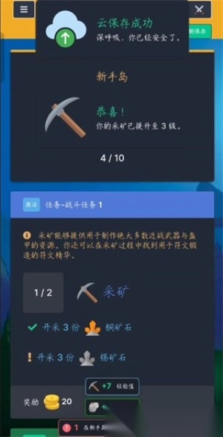 这个时候,玩家再去挖矿,和伐木是一个道理,遇到新矿就挖新矿,还能在商店买宝石手套,这样挖矿时会产出宝石,前期可以靠卖宝石赚到足够的钱。等有了一定的资金,就可以去经营城镇了。