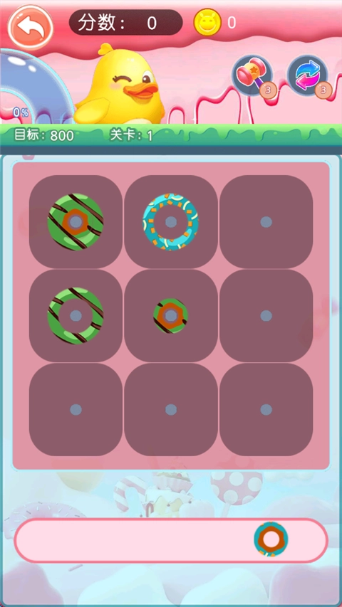 甜甜圈消消乐是一款充满趣味的消除类游戏。在玩法方面,玩家需把各种形状与颜色的甜甜圈放入九宫格内以完成消除操作。规则上,当一排或一列出现颜色相同的甜甜圈时即可消除,并且不同大小的甜甜圈能够堆叠在同一格子里,玩家还能将大、中、小三种尺寸且颜色相同的甜甜圈放入同一格来实现消除。