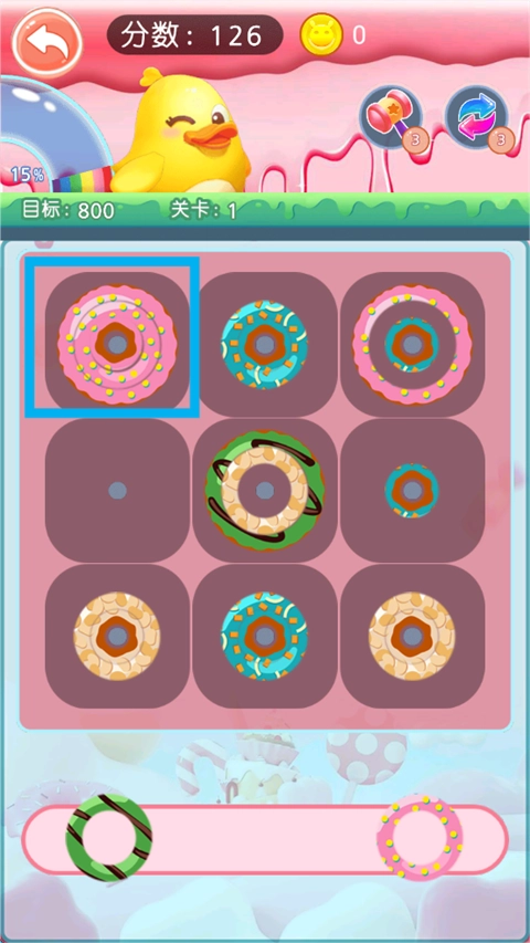 游戏里有各式各样颜色与形状的甜甜圈,这让视觉上更具吸引力,也增添了不少趣味性。