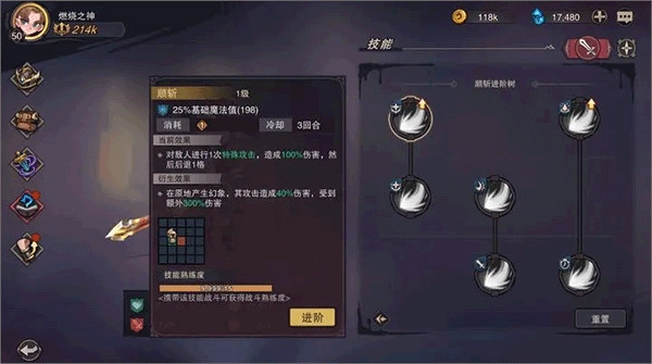 当熟练度达标后,技能即可自由进阶,进阶后的技能会新增衍生效果!