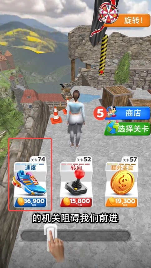 接下来就进入跑酷环节啦,借助界面下方的人物标识,就能操控角色进行左右方向的移动。
