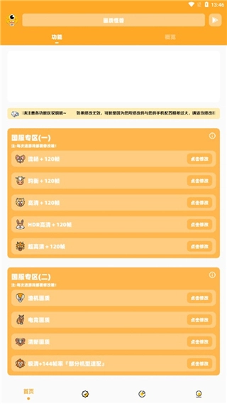 之后我们就能看到吃鸡国服和国际服的120帧画质修改界面,点击修改按钮就能使用了。