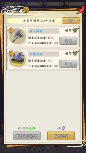 使用相同类型的法宝能够提升其星级,星级越高,法宝所带来的效能也就越显著。