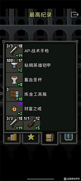 开局先拿蓄血圣杯,下水道和监狱区域能找到手斧、左轮手枪、肋差、十字弩、长剑这类二到四阶的武器,遇到幽灵会获得+1链甲;监狱里另外还有+2链甲、+1鳞甲以及炼金工具箱。矿洞区域有马南格和巨斧,小恶魔则会掉落+2财富之戒。