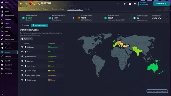 搜罗青年球员时,您往往会在国外找到一些高性价比的选择。要想拥有覆盖面最大的青年球员招募体系,您要尽可能拓展俱乐部职员的世界知识体系。