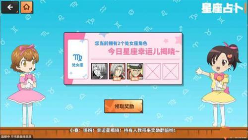 进入星座占卜的游戏界面,首先映入我们眼帘的是两位可爱的女主——小春和京子,她们两个就是这一玩法的主持人了。