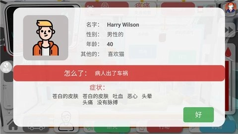 进入游戏,接收一个出车祸的病人,注意病人的症状。