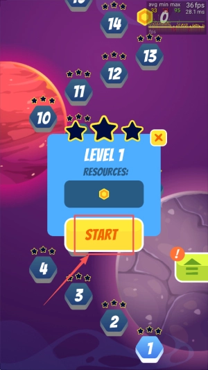 2、进入关卡:在LEVEL1 RESOURCES!界面点击START按钮。