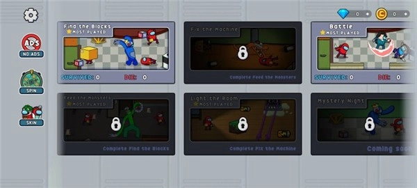 1、打开彩虹朋友太空杀游戏,游戏内设有丰富多样的玩法模式,每个模式都能让你收获截然不同的游戏感受;