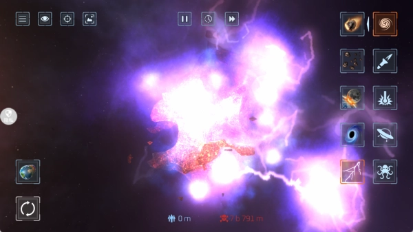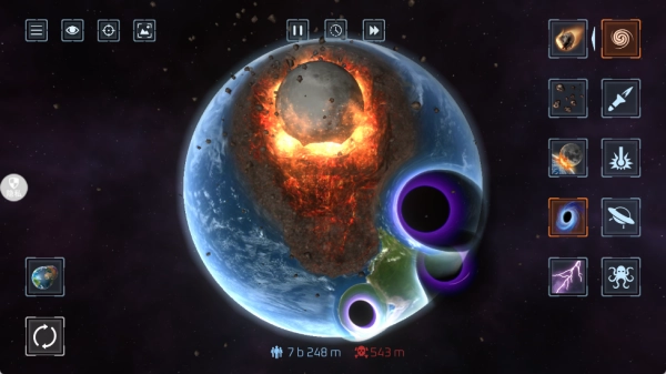在破坏星球的过程里,有可能会触发随机出现的宇宙灾害。黑洞会将周围的星球碎片吸附起来,进而形成壮观的引力漩涡。玩家需要在灾害的影响之下,对破坏策略进行调整。