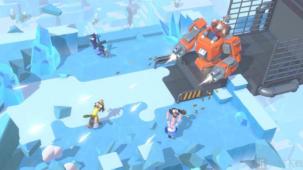1. 画面精美酷炫的游戏格斗场景里,一群模样超可爱的小鸡正在场中用鸡蛋或篮球展开格斗。