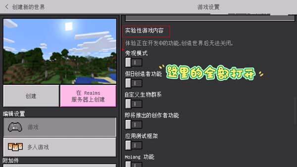 4、往下翻找到实验性游戏内容,将这里的全部打开。
