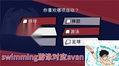 2、挑选自己喜爱的运动,每个选项都对应着一个攻略对象。需要说明的是,足球这里存在汉化错误,正确的应该是橄榄球。