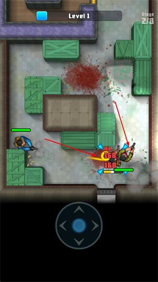 你可以借助虚拟摇杆来控制角色,让其在各个关卡里移动、探索场景并搜寻敌人。