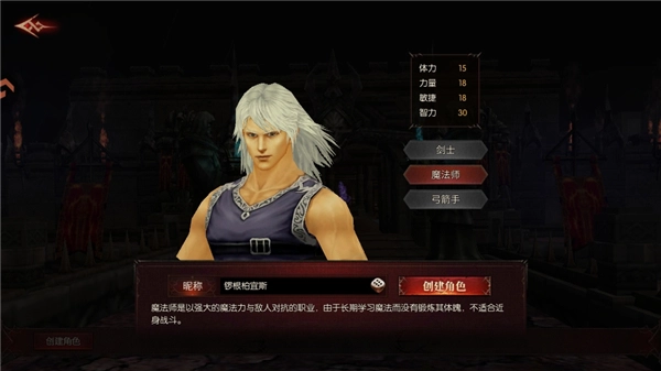接下来,创建你的角色信息,选一个心仪的职业。