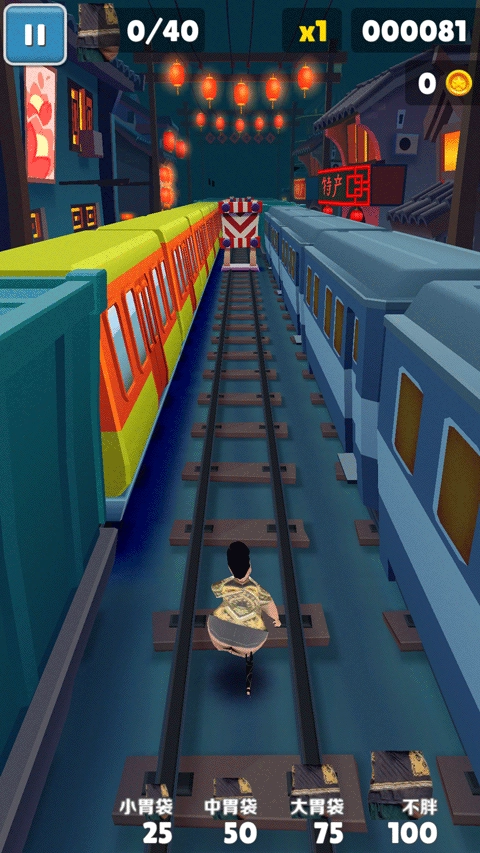 4、保留原版的爽快感,奔跑、躲避的节奏和原版一样流畅,熟悉地铁跑酷的玩家能快速上手,同时新增的专属道具和任务让玩法有了新目标,比如为了解锁“火锅皮肤”,会更有动力完成高难度任务,保持游戏的吸引力。最令人耳目一新的是对主角的特色魔改——“大胃袋良子”的形象和原版主角反差明显,圆滚滚的卡通模样自带喜感。跑步、跳跃之类的动作都经过全新设计,配上专属的语音和音效,让跑酷的整个过程都充满“良子风格”。像是踩上滑板的时候,良子会抱着滑板喊“冲呀”,辨识度特别高。