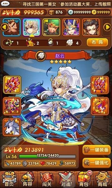 3.体验收集三国武将,集齐历史著名兵器的乐趣。