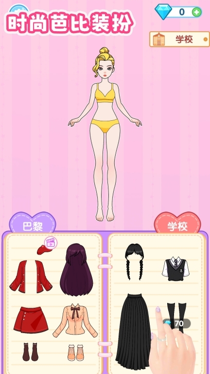 2、切换至巴黎学校等不同场景,依据场景风格进行搭配,例如在学校场景中选择校服风格,并保存相应的穿搭。