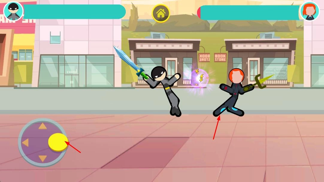 火柴人格斗风格:以经典火柴人形象为核心,融合流畅的格斗动作与华丽的技能特效,简洁线条间传递出强烈的视觉震撼力与战斗紧张感。