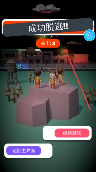 成功逃脱后点击继续游戏,进入关卡3,重复躲避与汇合的流程,积累经验以解锁更多越狱关卡。