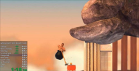 1、玩家操控着一个坐在类似缸中的角色,借助一把榔头持续向上攀爬,整个操作过程非常简单。
