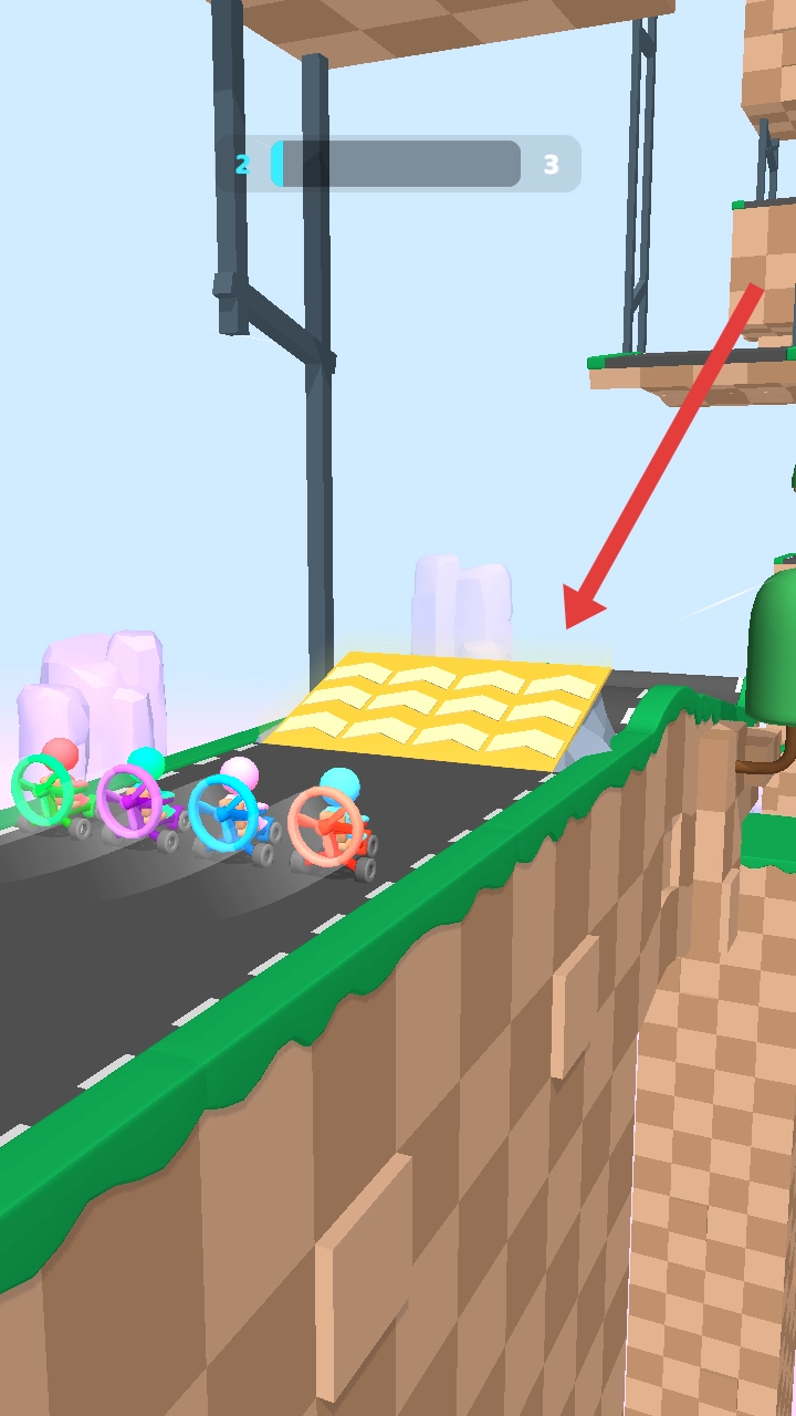 操控小车靠近终点的过程中,得掌握好跳跃的时机,跨越一道道障碍,准确无误地落在方格旗所标识的终点区域内。