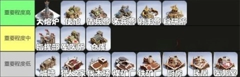 指挥部:它会对集结部队的带兵数量以及个人出征容量产生影响,是需要优先进行升级的建筑。