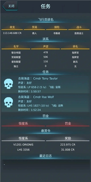 新手建议去LHS 223恒星系发展,有两个空间站而且离恒星近,注,该地为冲突地区,初期十分适合跟在正规军后面打星盗刷赏金(红名星盗十分可恶,在你装载有一定货物时会大概率对你发起攻击想要掠夺货物,反之当你货仓什么也没有时红名固定中立无视你)。