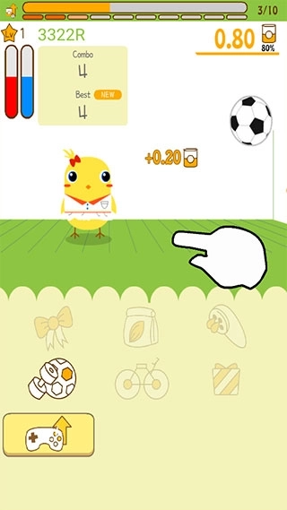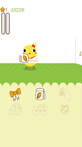2、这就是你可爱的小鸡仔,左上角显示为等级,底部蝴蝶结图标可以为它装扮。