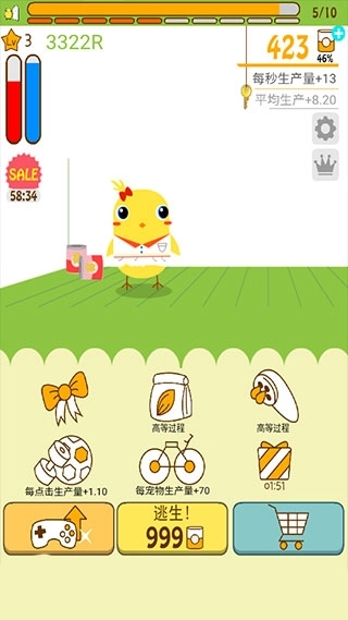6、收集小鸡罐头可以在“游戏”处为宠物的生产量加速。