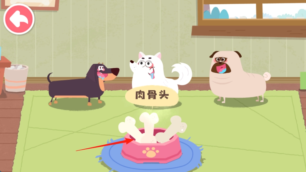 摆放肉骨头,引诱小狗来吃,留意它的反应,把任务做完,就能开启新的内容啦。