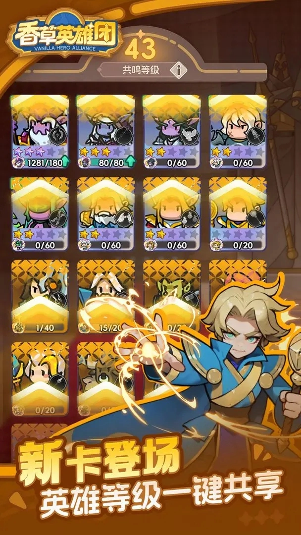 新卡登场,英雄等级一键共享。