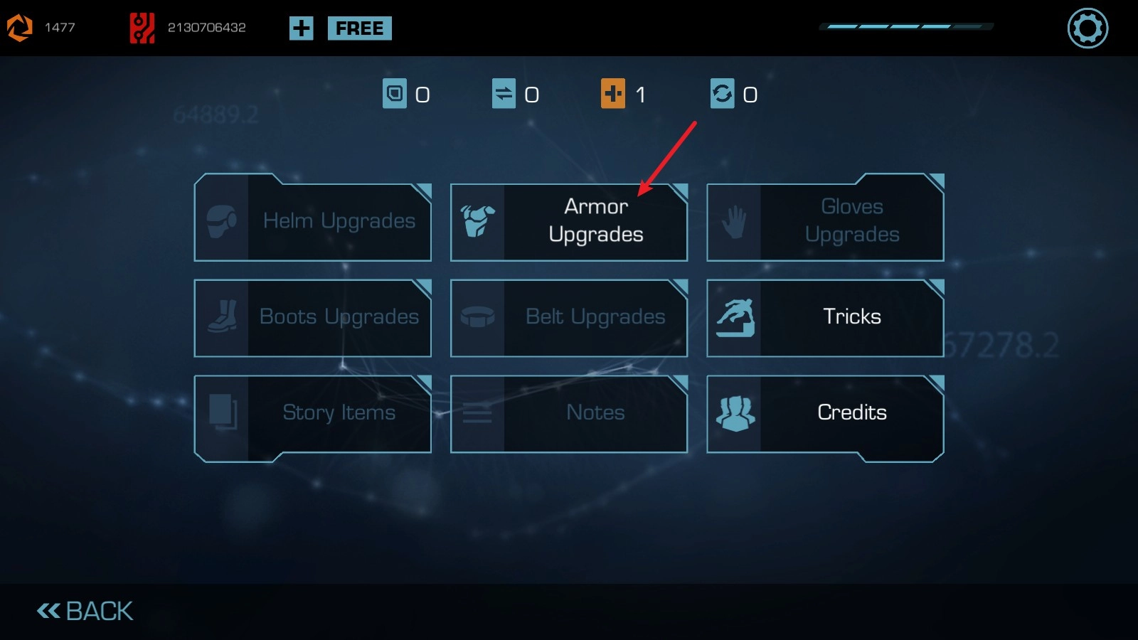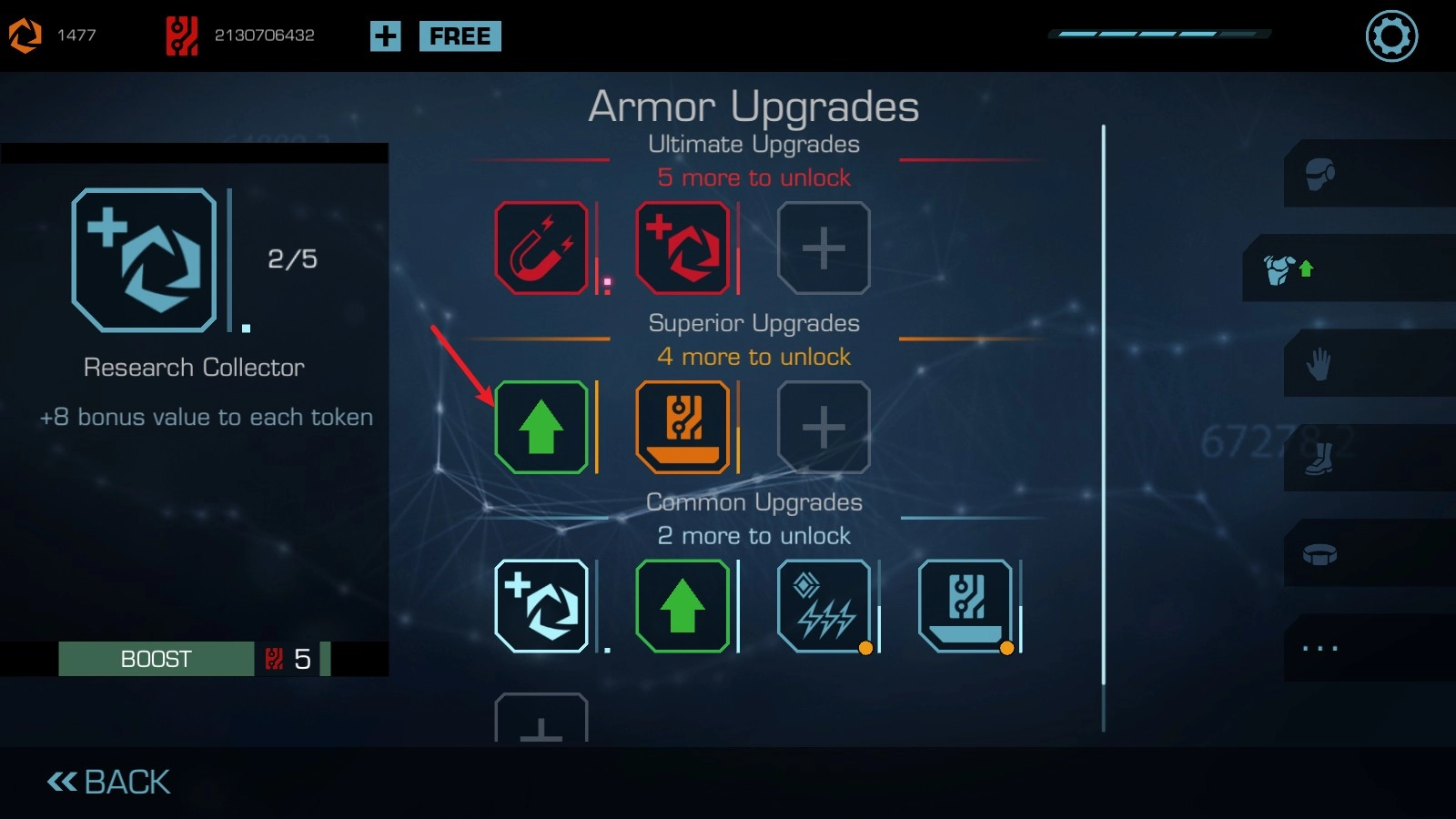 进入里面后,我们就能把刚才获得的部件装备上,还可以花费货币来进行升级。