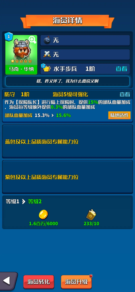 热知识:海员转化能返还资源,大家可以等抽到优质船员后,用转化返还的资源来培养他们,这里要划重点的是: