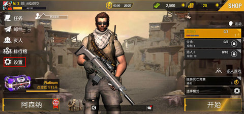 1、狙击精英游戏进入游戏,点击左侧设置栏。