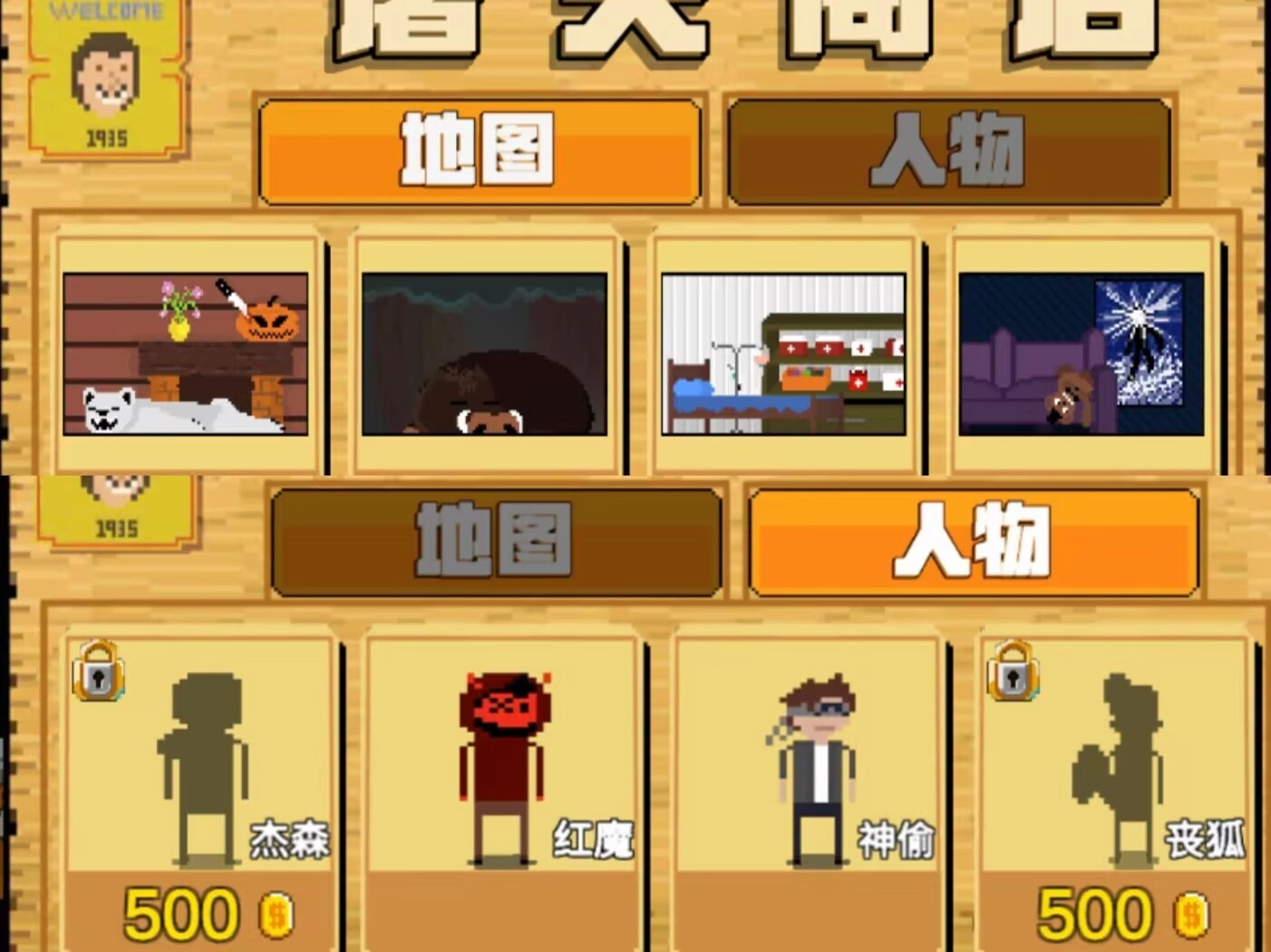 点击左下角的商店,就能挑选地图和人物啦!所有地图都已经解锁完毕,人物也不用看广告,直接点击就能解锁哦!