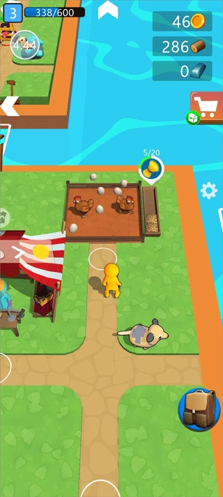 通过伐木获得木材,搭建小鸡家后收获鸡蛋