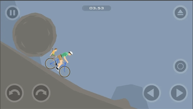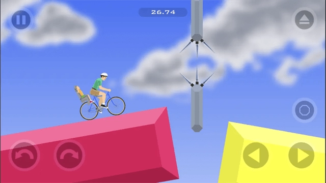 屏幕上共有五个操作按钮,左下角的三个分别是跳跃、左倾和右倾,借助左侧的按钮能够调整平衡,而屏幕右下角的两个按钮则是前进和后退。