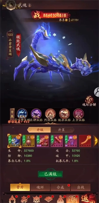 极致武魂,100级冰碧帝皇蝎