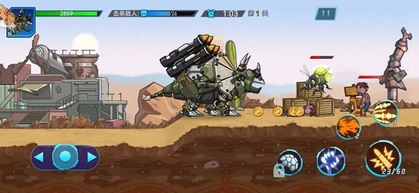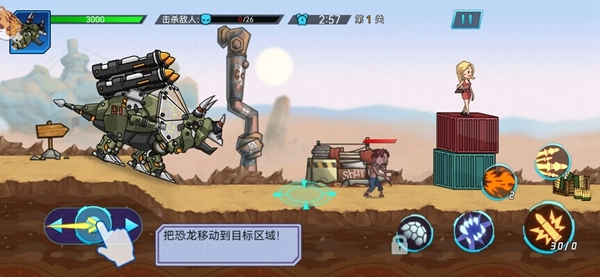 进入游戏后,把恐龙拖到目标区域,点击攻击按钮让它撕咬敌人,直至将对手消灭。