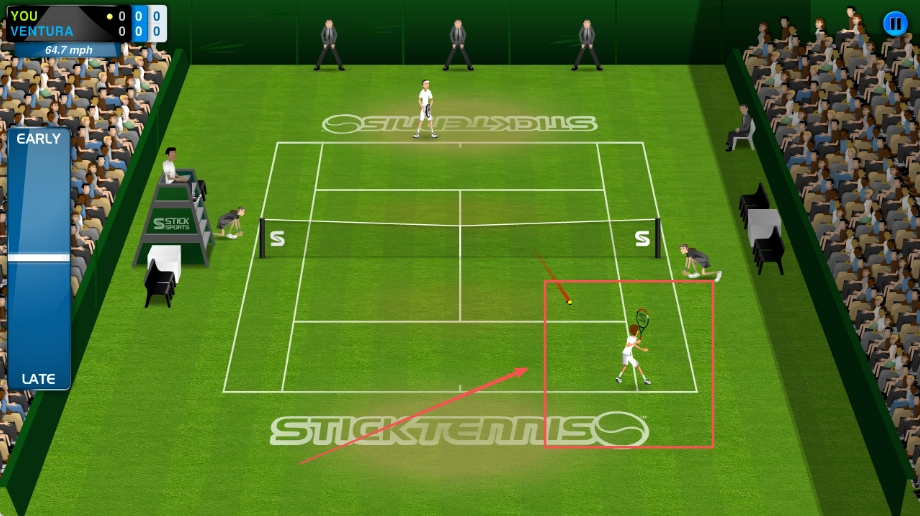 比赛开始时轻触屏幕发出首球,球飞回时需精准判断落点时机并再次点击完成回击,以此维持比赛节奏。