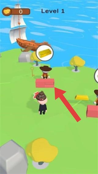 玩家操控角色夺取宝箱、避开敌人,在包含水域、树木、岛屿的关卡场景里前进,达成关卡目标后解锁新内容。