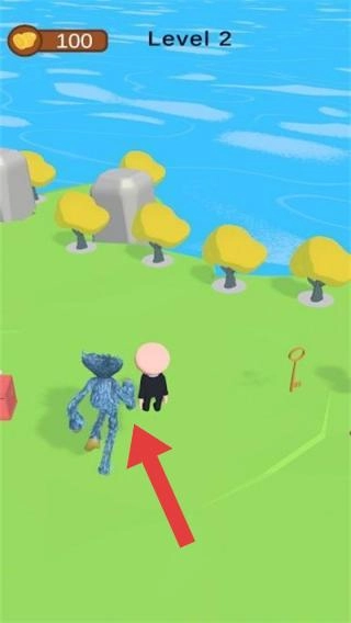 游戏场景中包含角色、怪物、水域、树木、钥匙等元素,玩家需要操控角色在关卡中展开冒险,通过躲避或对抗怪物、收集各类道具来推进关卡进程,充分感受闯关带来的乐趣。