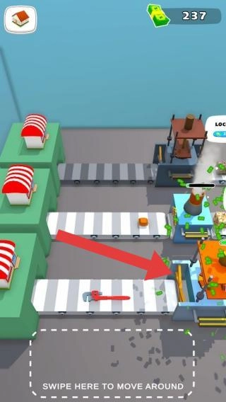 玩家在游戏中负责经营流程、调度物品运输,借助滑动等交互方式管控场景内的生产与配送环节;画面展现出工厂生产运输的布局,包含传送带、各类工具以及建筑等元素。