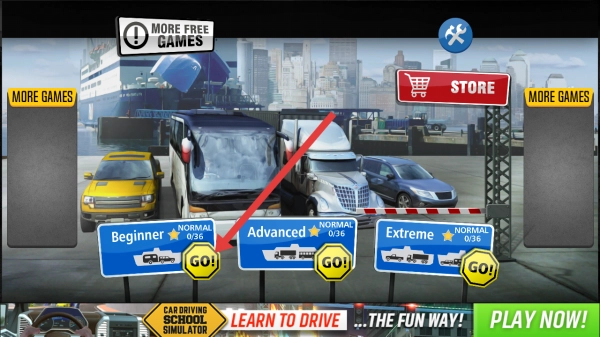 在关卡选择界面,点击【Beginner】下方那个黄色的【GO】按钮,就能开启初级驾驶挑战啦。