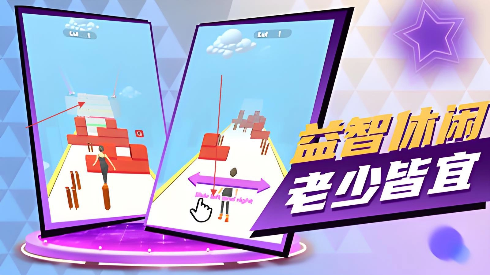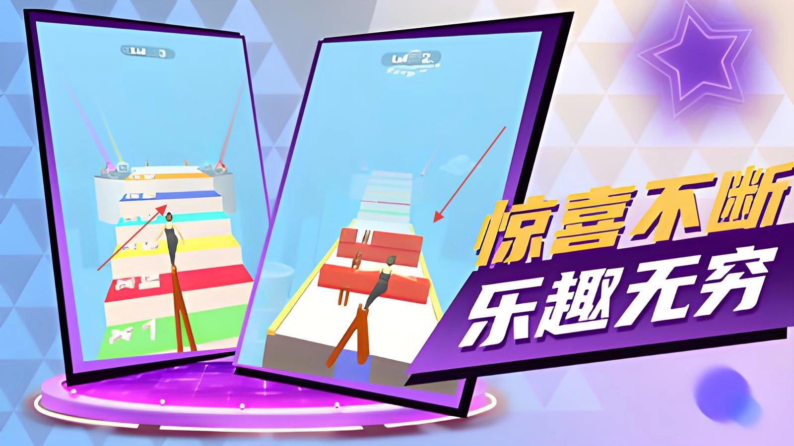 《看我表演》是一款以高跟鞋跑酷为核心玩法的休闲竞速精品游戏。玩家将化身时尚女郎,在布满奇幻阶梯的赛道上尽情狂奔。游戏中,你需要收集不同高度的高跟鞋,通过精准切换鞋跟高度来巧妙跨越各种障碍,既能体验魔性跑酷的刺激,又能感受时尚穿搭的乐趣。游戏精心打造了城市天桥、星光T台、魔法城堡等特色主题赛道,每个关卡的阶梯高度都会随机变化,玩家必须收集对应高度的高跟鞋才能顺利应对挑战。