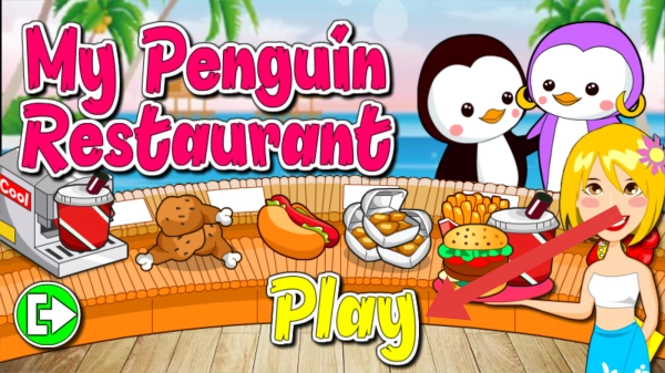 画面中包含企鹅角色、各式各样的美食,以及标有【Play】(开始游戏)的按钮。玩家可以经营一家以企鹅为主题的餐厅,在游戏过程中体验餐厅经营的乐趣,通过制作美食、为顾客提供服务等环节来推动游戏进程。