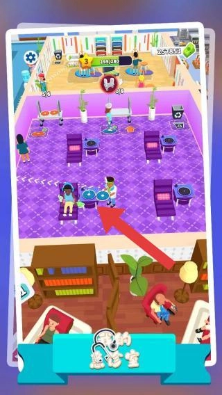 呈现温泉店经营场景,有角色互动、顾客接待、设施布局等,玩家可进行店铺运营管理,属于模拟经营类玩法,聚焦温泉店经营体验。